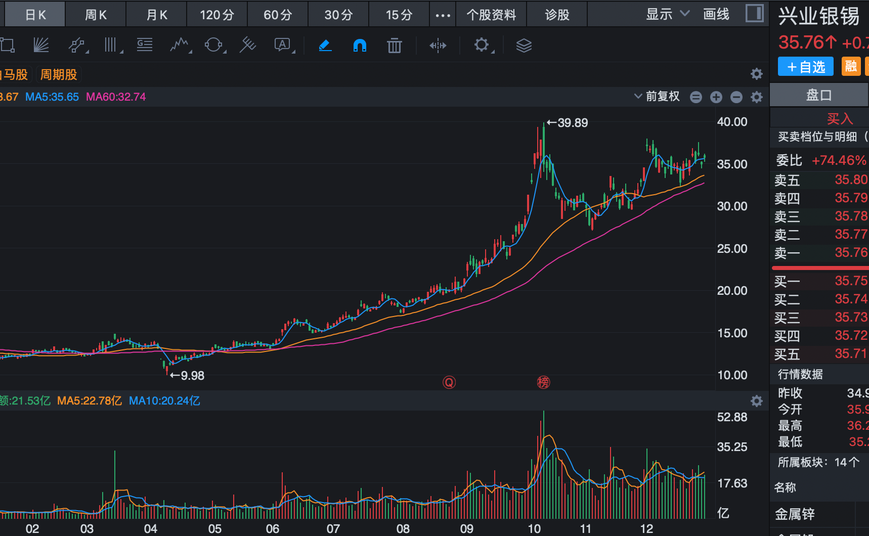 第四个:铜陵有色$铜陵有色(SZ000630)$