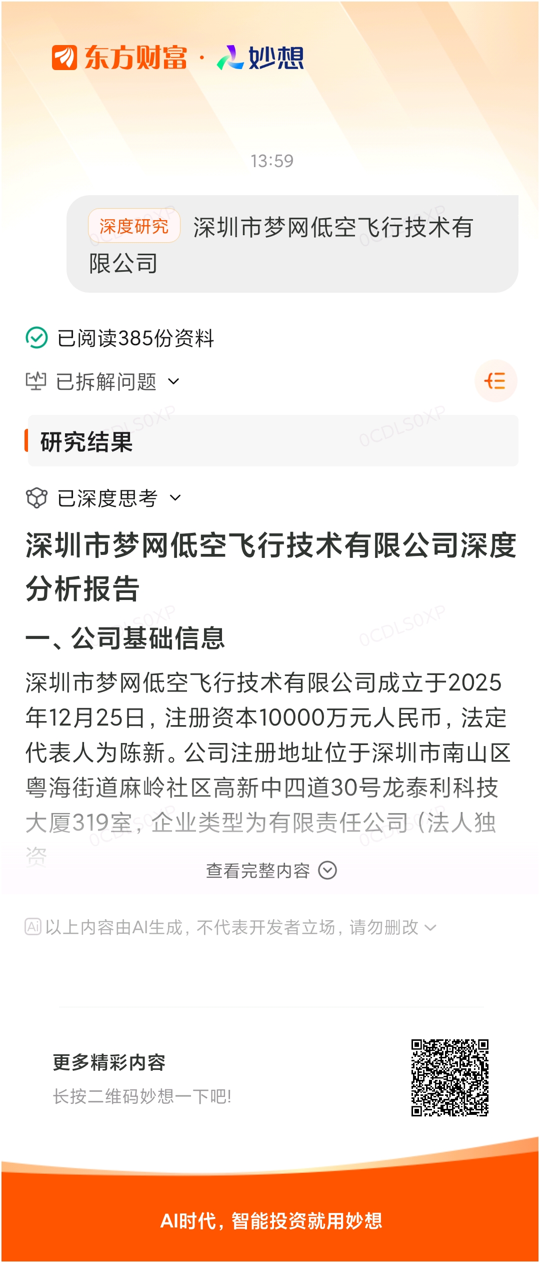 #@妙想,你怎么看?# 妙想一下:深圳市梦网低空飞行技术有限公司