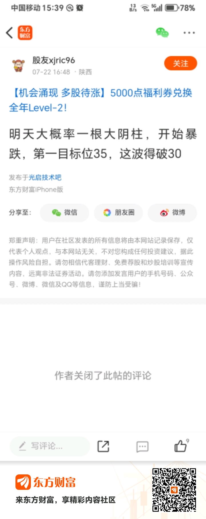 温馨提示: 1.根据《证券法》规定,禁止编造、传播虚假信息或者误导性信息,扰乱证券市场;2.用户在本社区发表的所有资料、言论等仅代表个人观点,与本网站立场无关,不对您构成任何投资建议。用户应基于自己的独立判断,自行决定证券投资并承担相应风险。《东方财富社区管理规定》