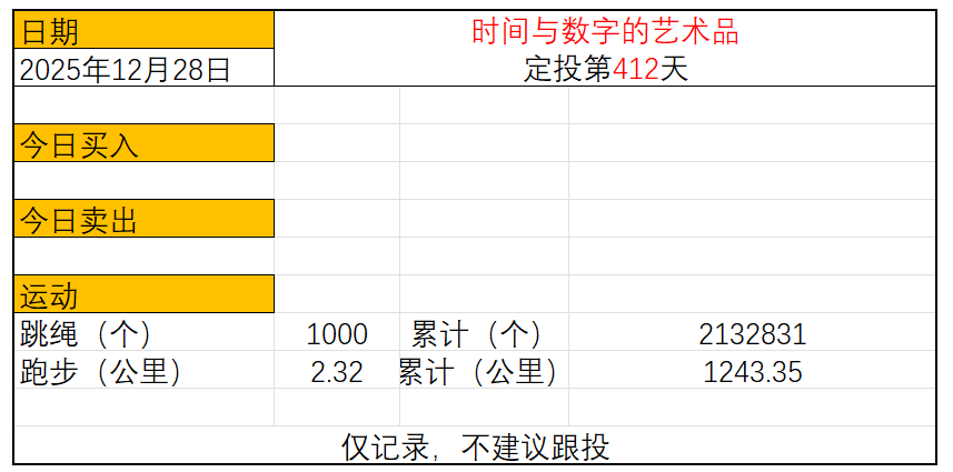 运动与投资第412天2025年12月29日今日定投:周末,没有定投跳绳:1000