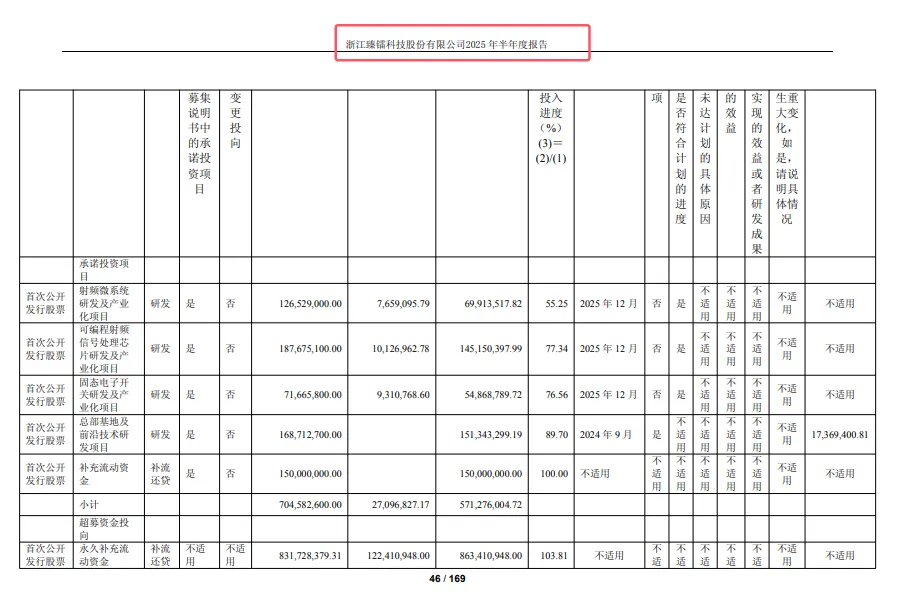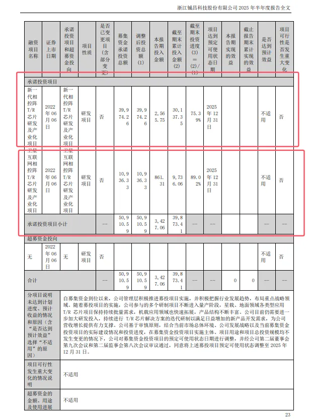 铖昌科技募集资金承诺项目情况【铖昌科技2025年半年报】: