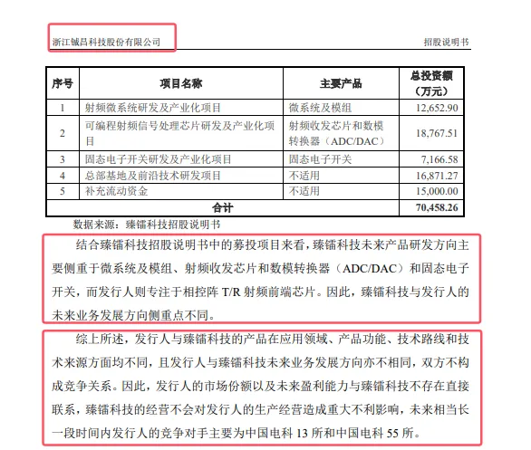 7.铖昌科技和臻镭科技的一些对比【铖昌科技招股说明书】: