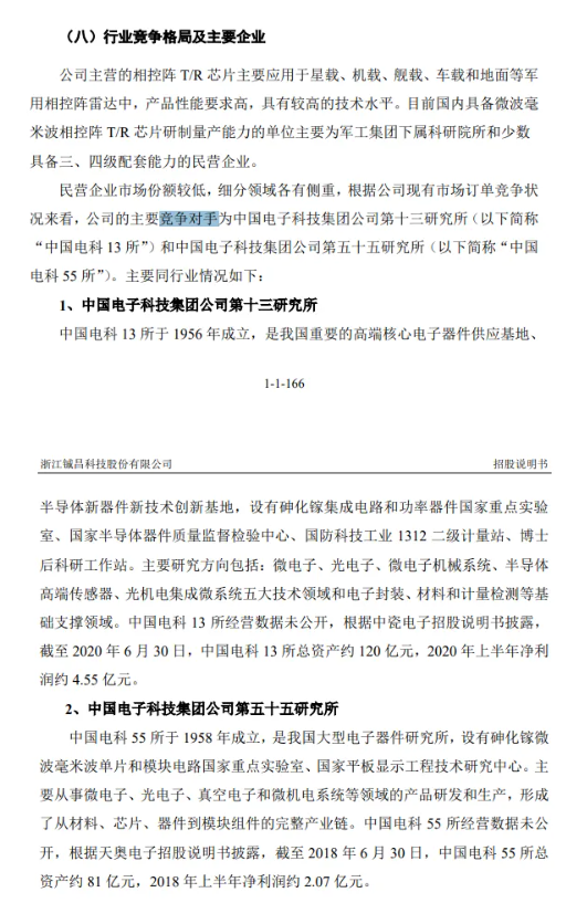 从上图可以看出,铖昌科技的主要竞争对手是中国电子科技集团公司第十三研究所和中国电子科技集团公司第五十五研究所。