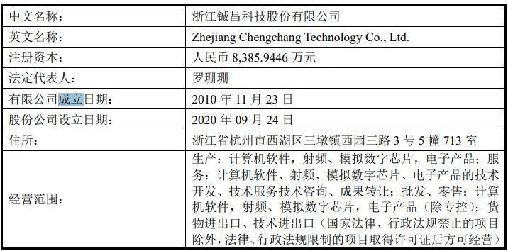 铖昌科技成立时间及简单介绍:【铖昌科技招股说明书】
