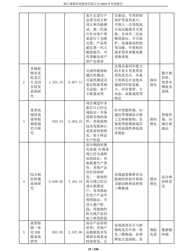 臻镭科技在研项目情况【臻镭科技2024年年报】: