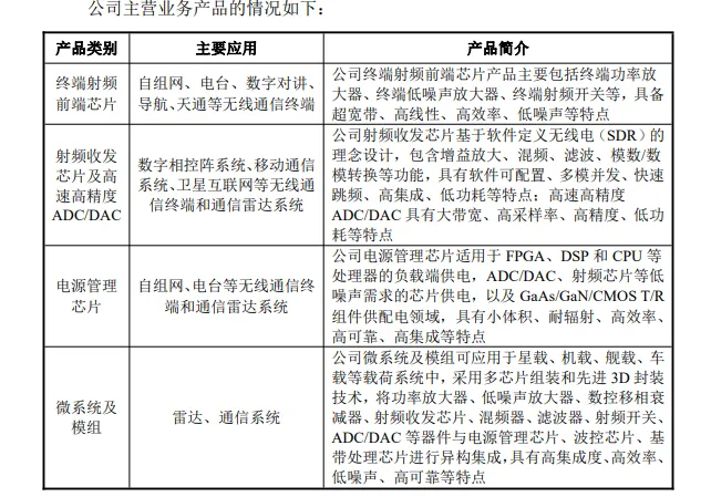铖昌科技主要产品情况及示意图【铖昌科技招股说明书】: