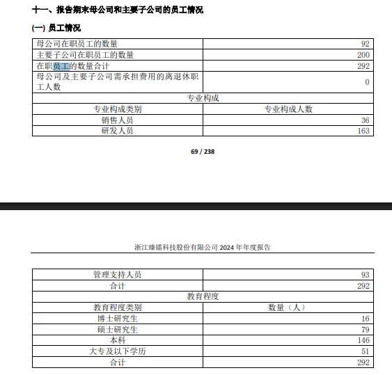 臻镭科技母公司和主要子公司的员工情况【臻镭科技2024年年报】: