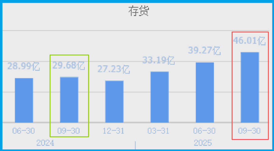 订单的增长,直接带来了下一个惊人的现场:“存货”余额飙升至46.01亿元,同比激增55.01%。