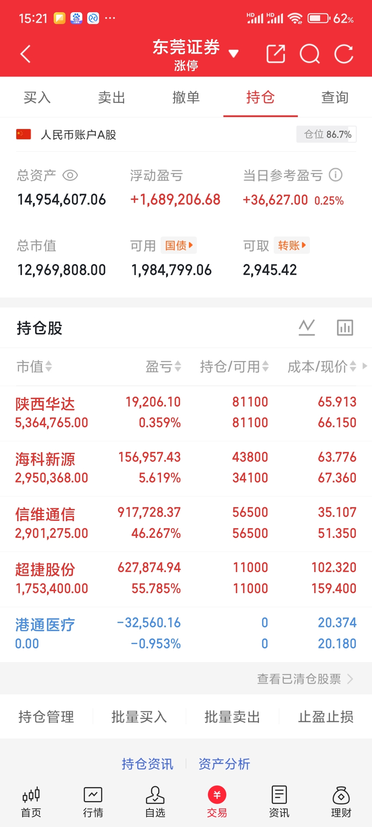 目前持有:陕西华达 海科新源 信维通信 超捷股份