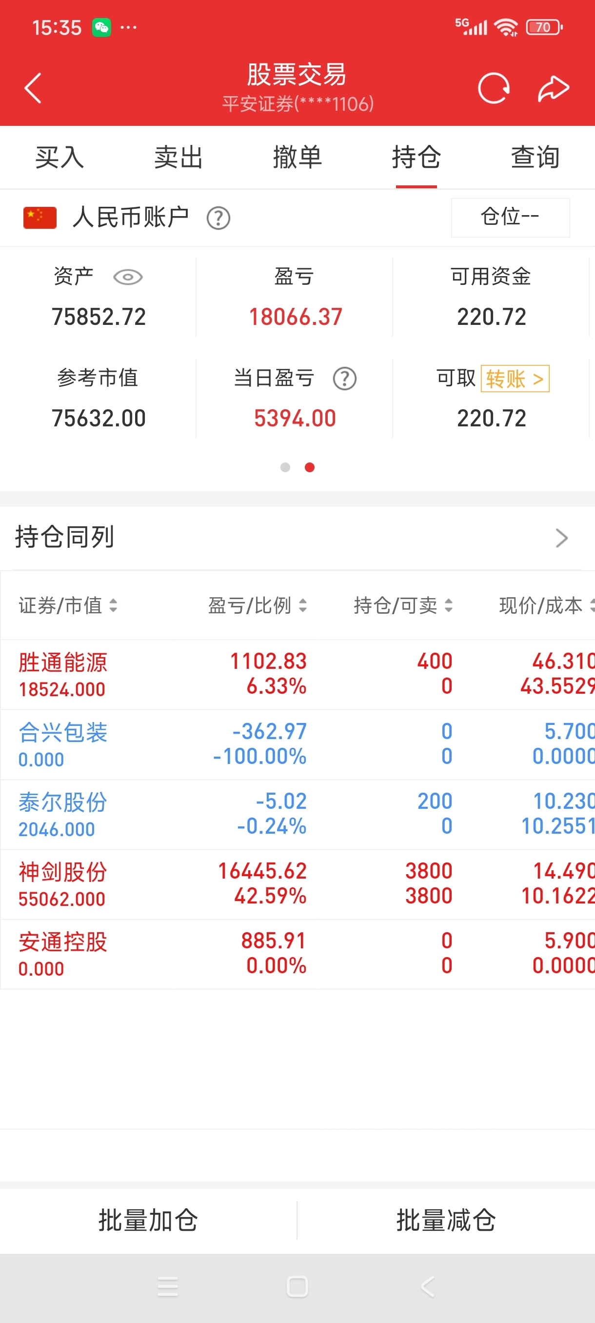 今天按计划早盘清盘安通控股与合兴包装,神剑仍在预期之内继续持股,厦门国贸竞价大幅
