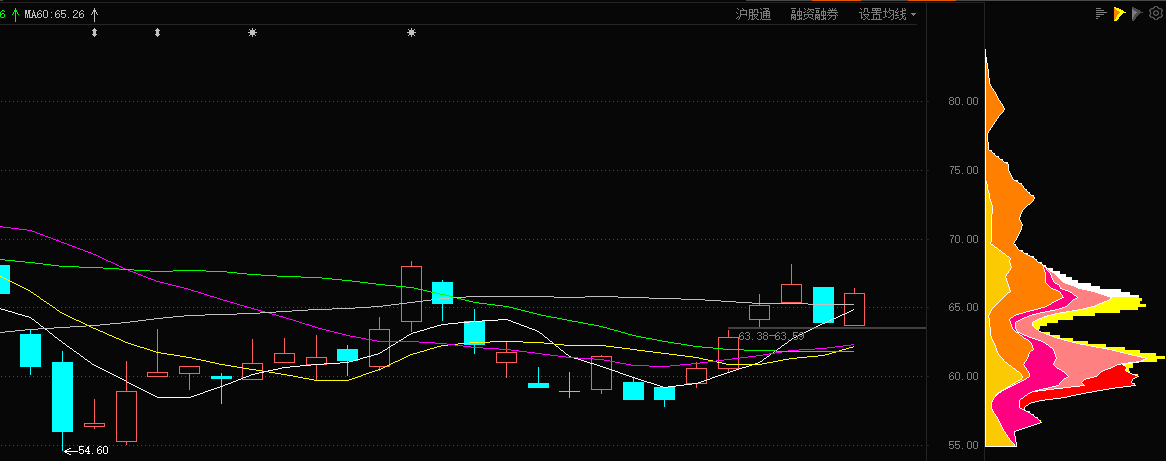 工业富联:从今日早盘走势来看开盘后G价呈平开震荡上涨态势,我也是在65.2左右做了个T,继续看好它下午的一个走势。