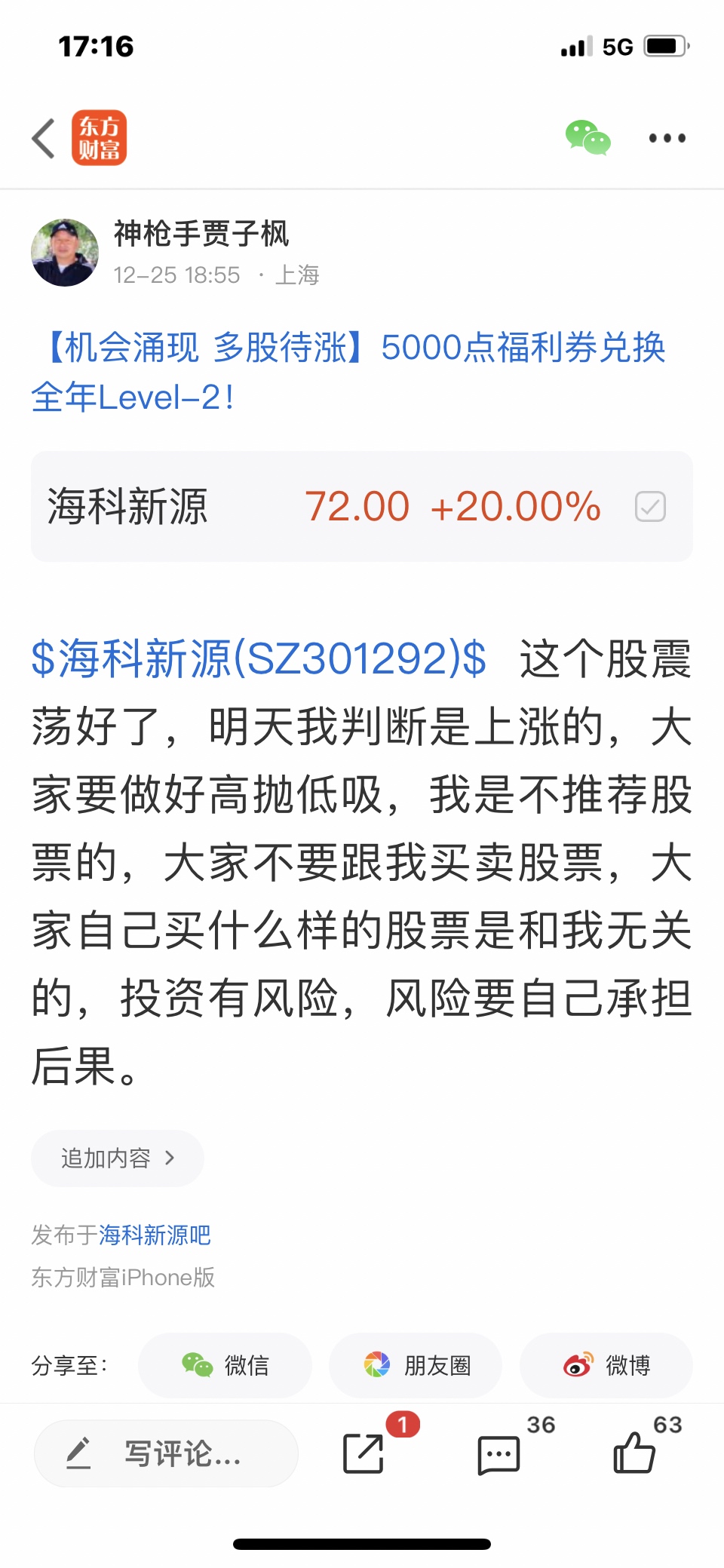 温馨提示: 1.根据《证券法》规定,禁止编造、传播虚假信息或者误导性信息,扰乱证券市场;2.用户在本社区发表的所有资料、言论等仅代表个人观点,与本网站立场无关,不对您构成任何投资建议。用户应基于自己的独立判断,自行决定证券投资并承担相应风险。《东方财富社区管理规定》