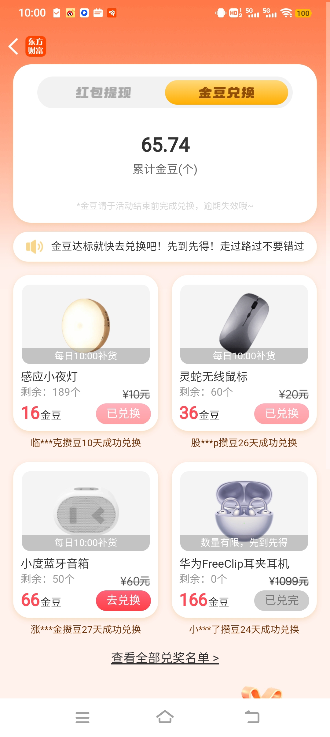 逗我呢!活动最后一天,66金豆就差0.3金豆,看到小度蓝牙音箱更新库存也换不了