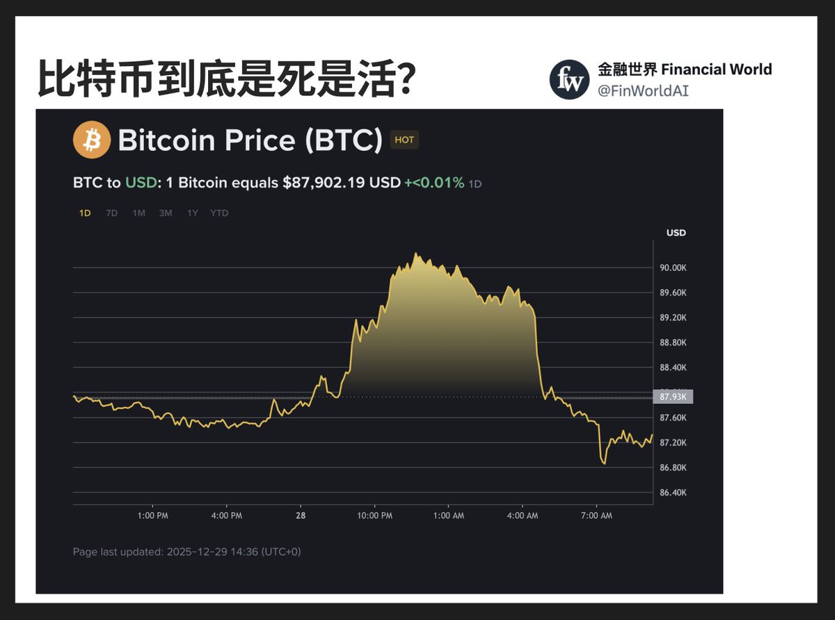 真正的问题出现在上方。接近前期密集成交区后,机构级卖盘开始出现,选择在流动性较好的位置减仓,而不是追高加仓。与此同时,全球资金的风险偏好仍在下降,高波动资产并不在优先配置序列中。