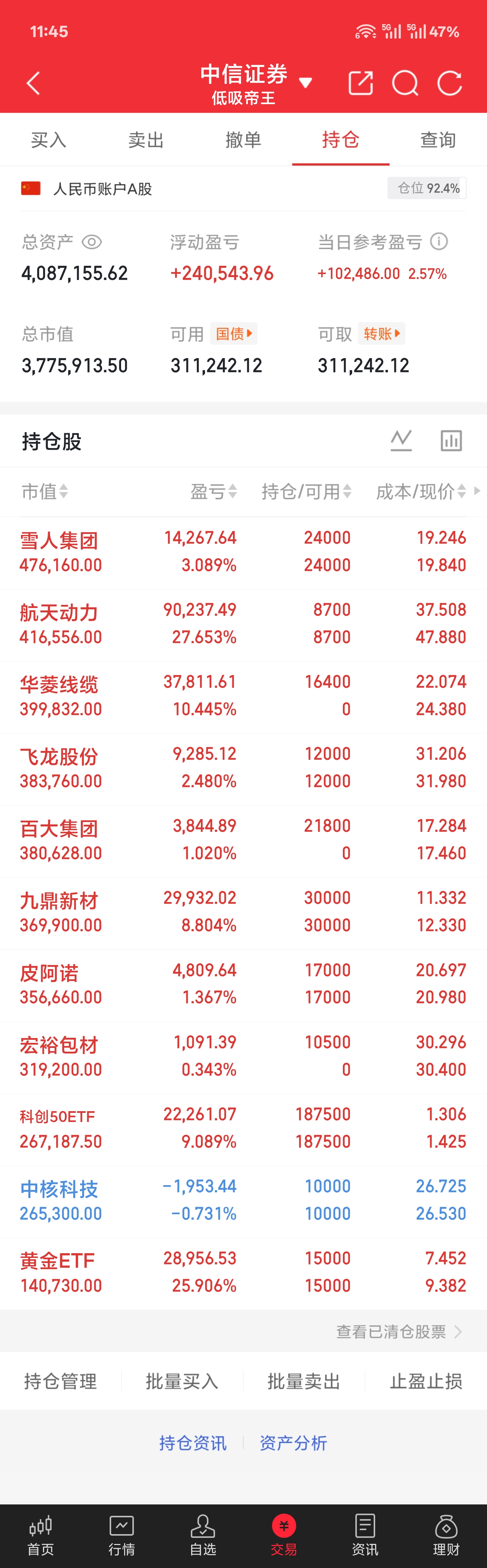 没什么想说的,持仓说明一切。$雪人集团(SZ002639)$ 、$百大集团(SH600865)$ 、$宏裕包材(SZ920274)$基本都在预设的轨道上跑。做交易久了,心态就稳了,不再追求暴富,只求逻辑的精准兑现。