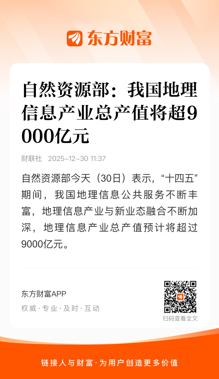 自然资源部今天(30日)表示,“十四五”期间,我国地理信息公共服务不断丰富,地理信息产业与新业态融合不断加深,地理信息产业总产值预计将超过9000亿元。