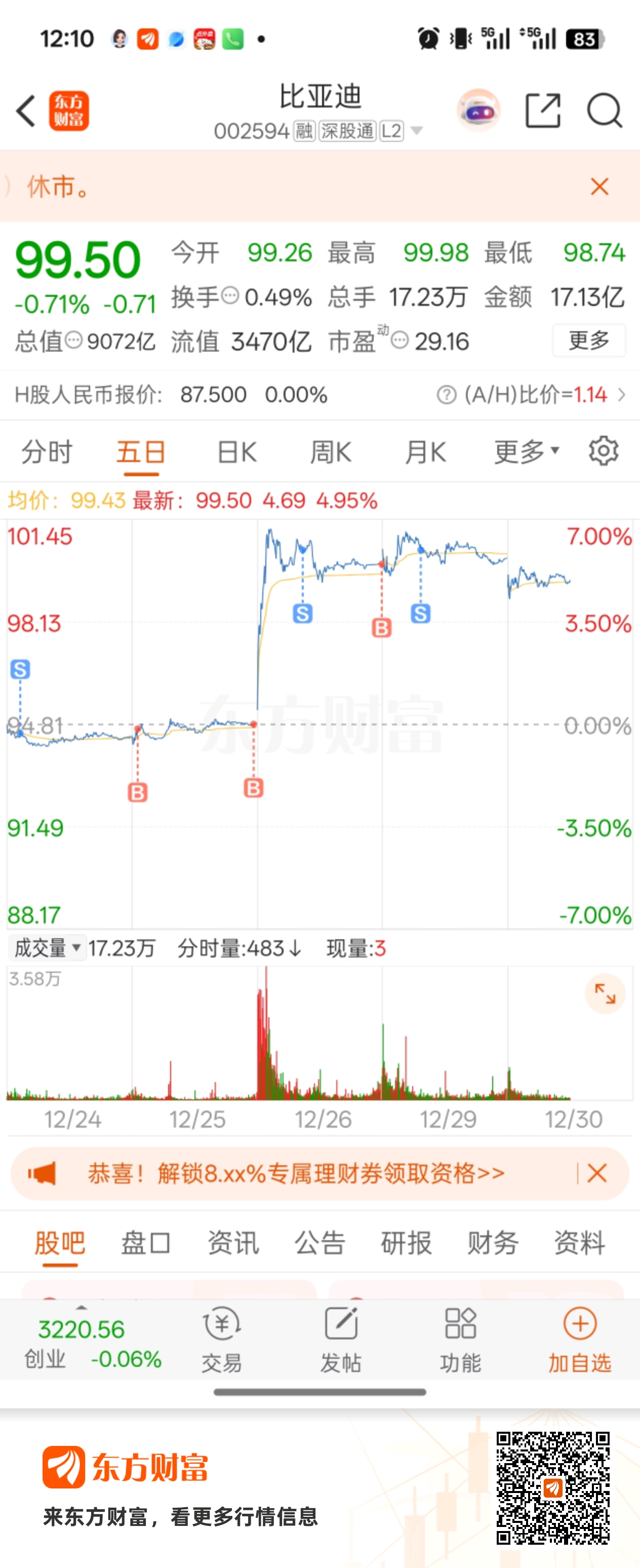 温馨提示: 1.根据《证券法》规定,禁止编造、传播虚假信息或者误导性信息,扰乱证券市场;2.用户在本社区发表的所有资料、言论等仅代表个人观点,与本网站立场无关,不对您构成任何投资建议。用户应基于自己的独立判断,自行决定证券投资并承担相应风险。《东方财富社区管理规定》