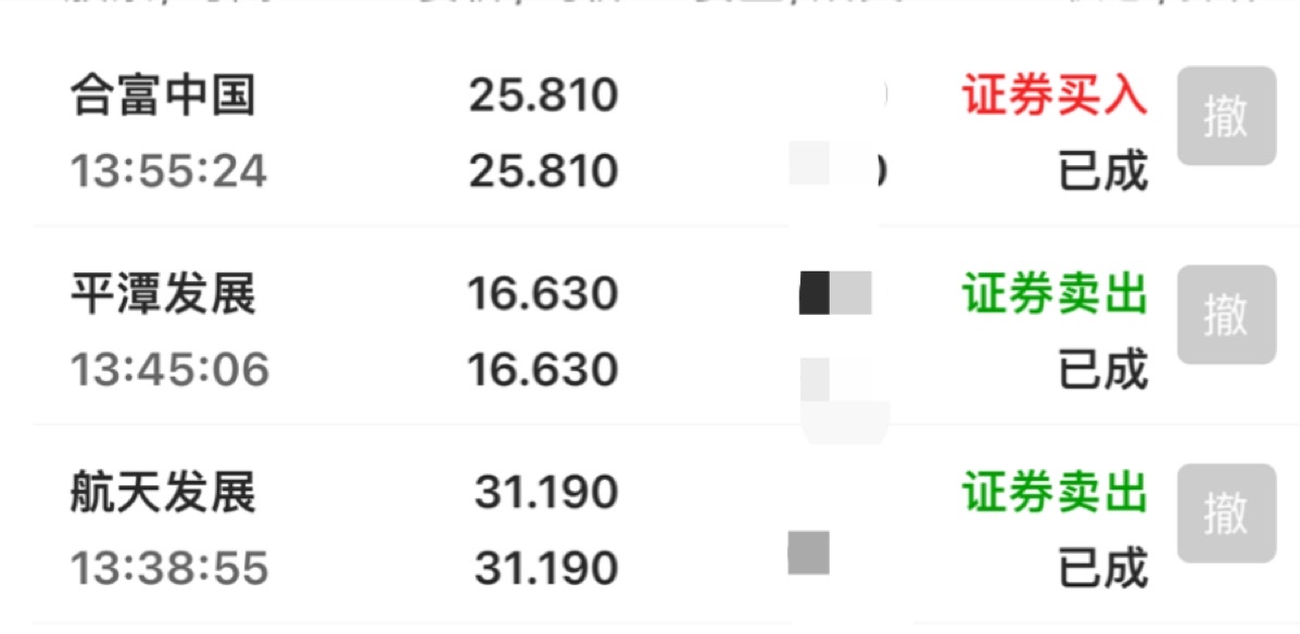 今日交易记录,清仓平潭,航发,买入合富