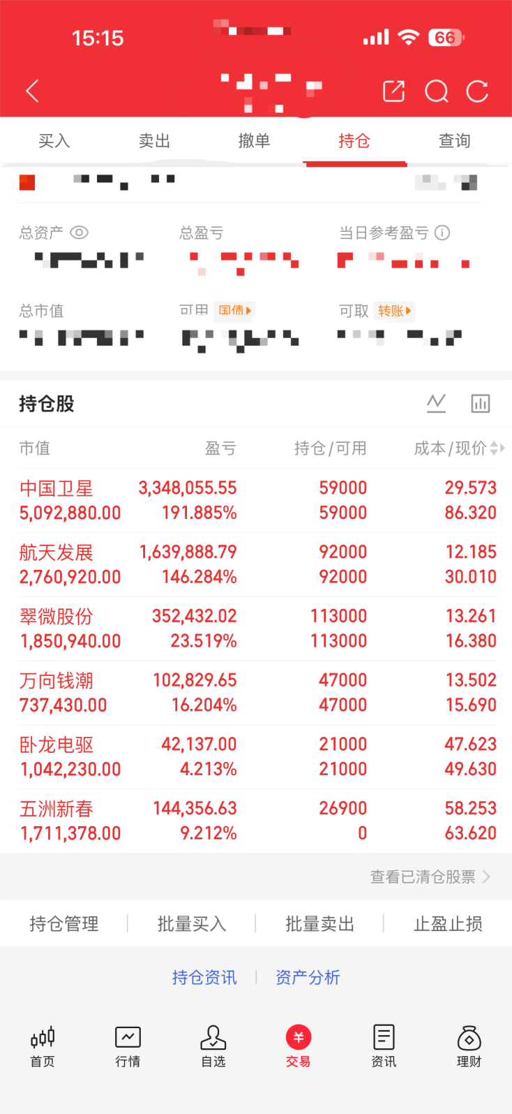 航天发展:军工信息化+商业航天+卫星互联网。公司近年来也涉足商业低轨卫星运营,今天盘面在早盘大幅冲高后一度逼近涨停的位置,随着航天股的集中回落,这个票也是震荡翻绿明显,股价短期内透支较多预期,航天板块内部筹码松动,接下来个股走势可能会从快速拉升转为高位震荡,对于已有仓位的人可以持有观察但需设好止盈。
