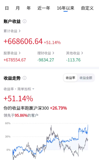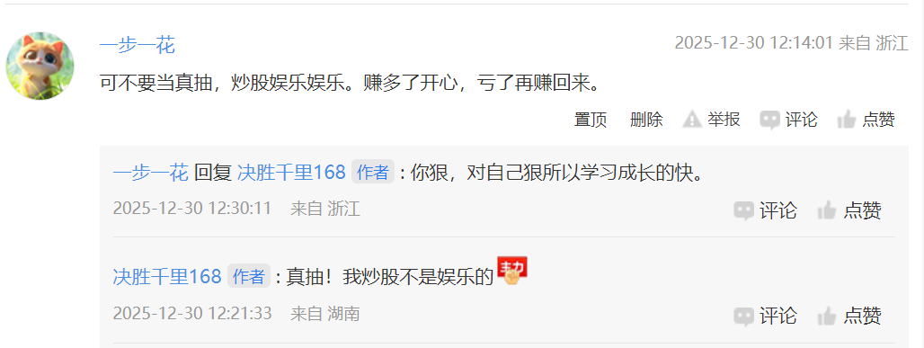 有一说一,这位粉丝的心态我认为是非常好的。因为我的父亲也是这样心态的一个老股民。他很少看盘,也很少操作。他只把股市当做一个娱乐的地方。里面的钱,也是很少出入。16年他在股市赚了60W。
