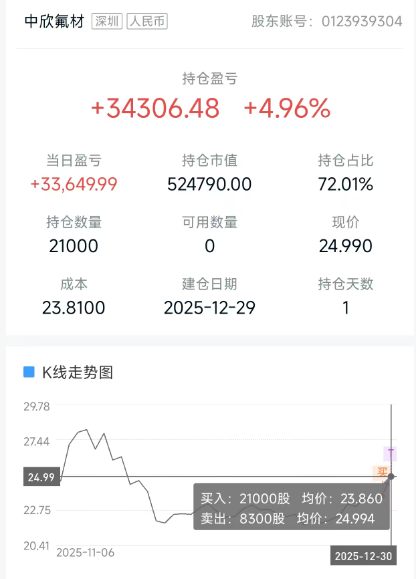 龙溪尾盘减了仓,该强不强就是弱,明天如果机器人分化,他大概率也是走不出来。所以,明天如果继续行情,他还是不敢表现,那干脆全部调仓到中欣氟材或者新瀚新材去算了。