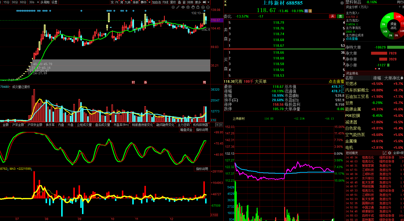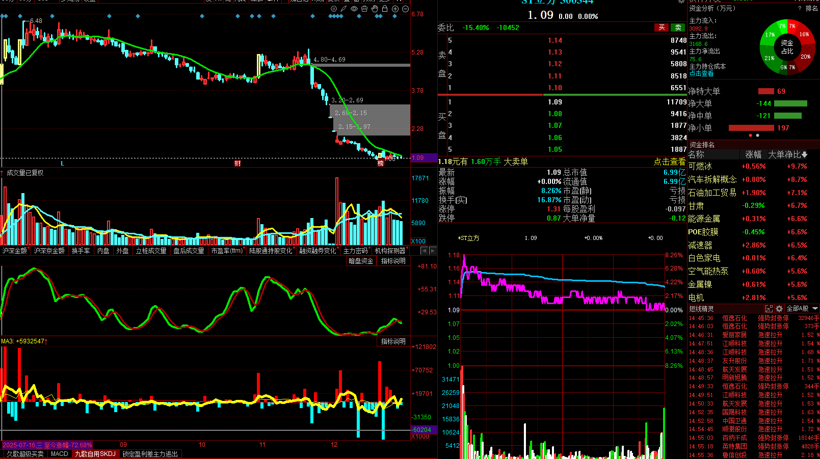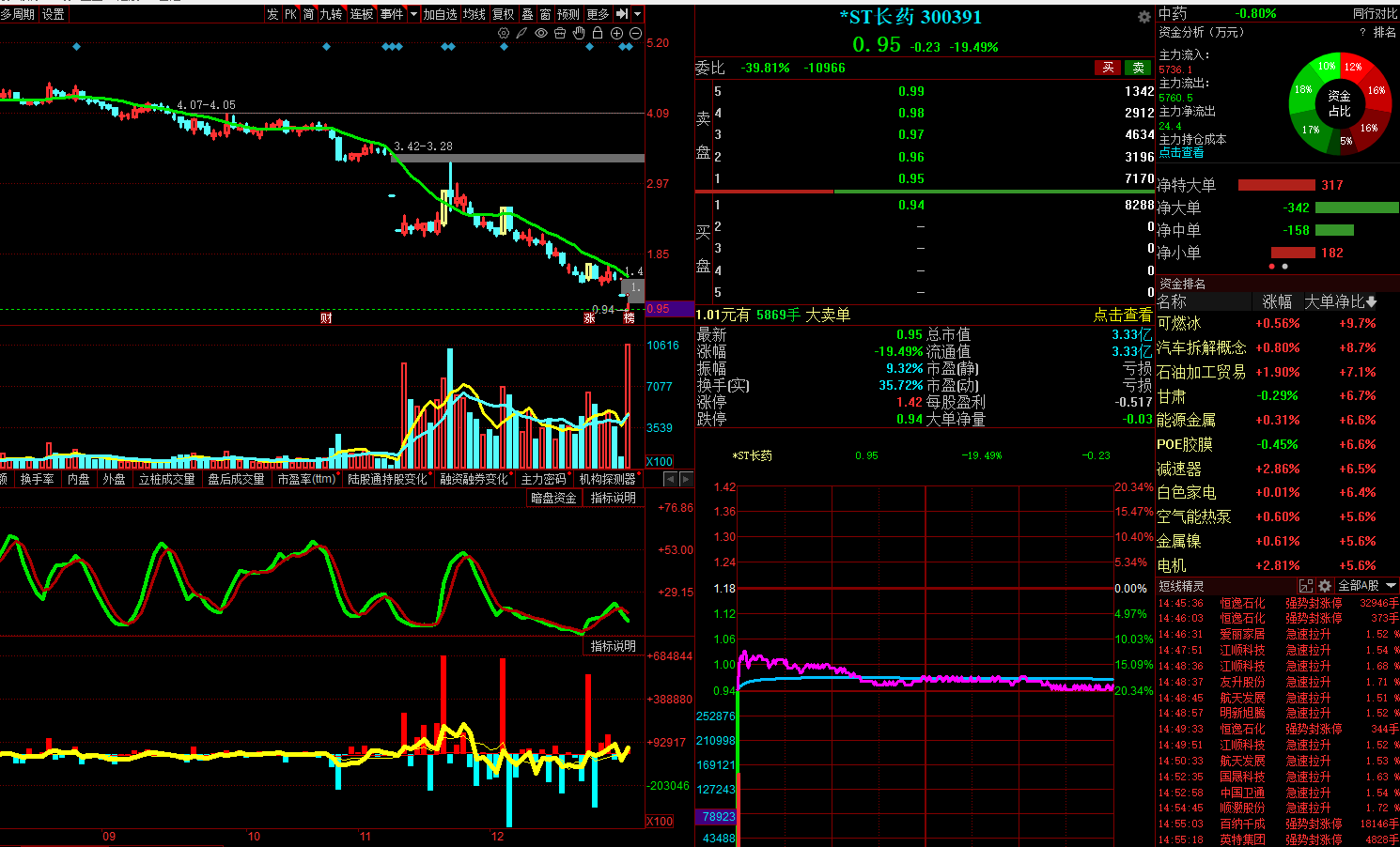 从下图可以看出,这些垃圾股的成交量还十分巨大,也说明一部分自以为自己最聪明的冒险分子还在这种地价的垃圾股中交易,从一路K线组合形态来看,大凡参与操作的没有几个人能真正在盈利。