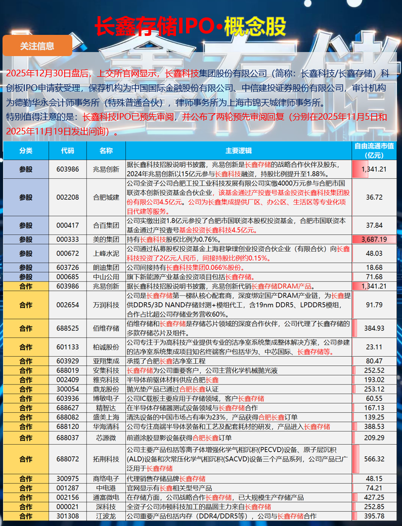 长鑫存储IPO·概念股