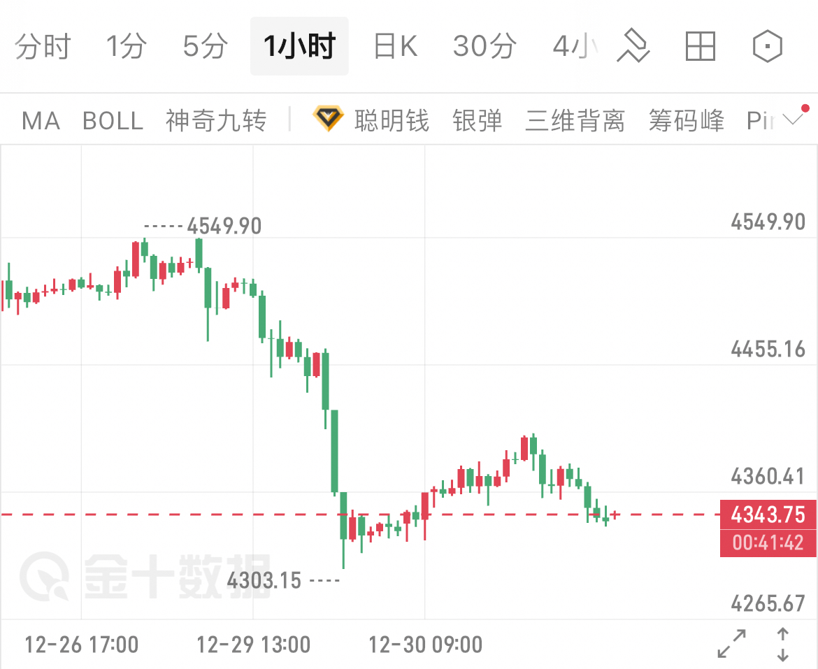 12.31黄金早间看法黄金前期从高位大幅回落,在4303附近获得支撑后反弹,当前