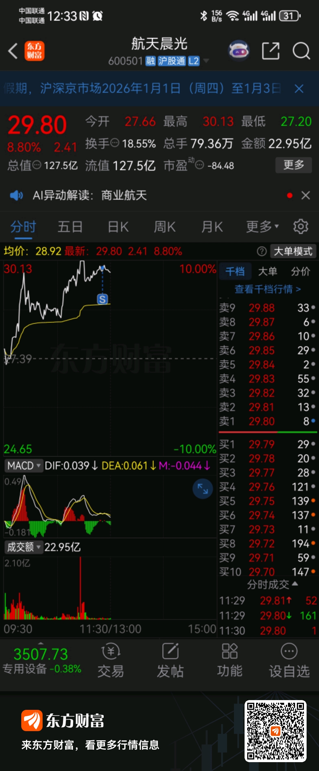 #炒股日记# 封板不结实,卖了。谢谢财神团。
