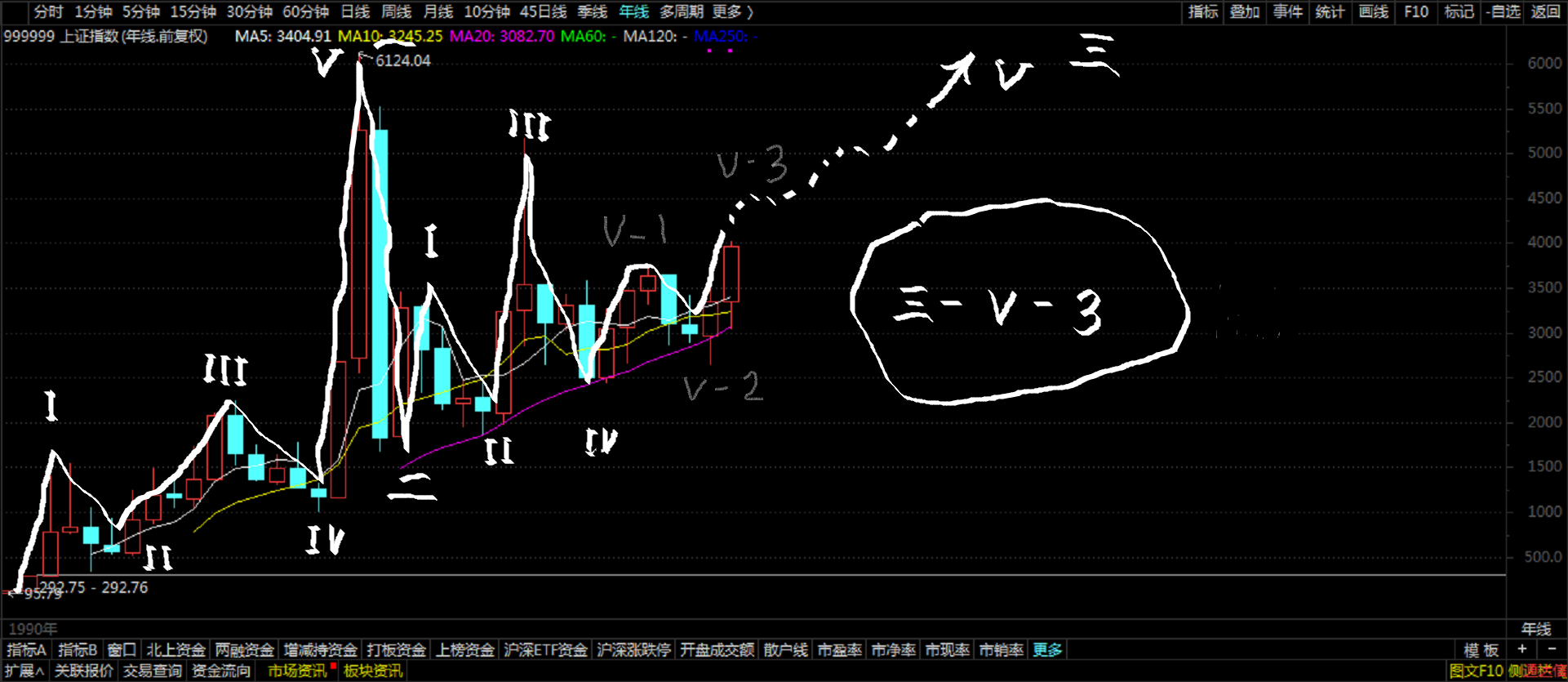 2025年结束了。笔者对于上证指数所处于的波浪位置的划分如下图,个人观点不足当成投资依据仅供看客参考。