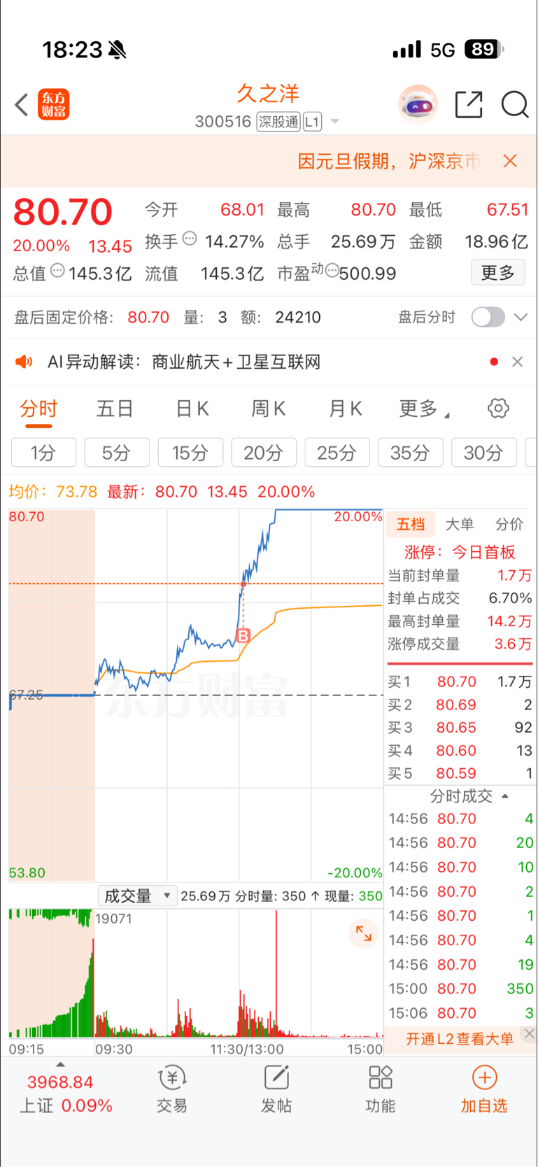 20251231,最后一个交易日,再进久之洋。割肉了过的反转