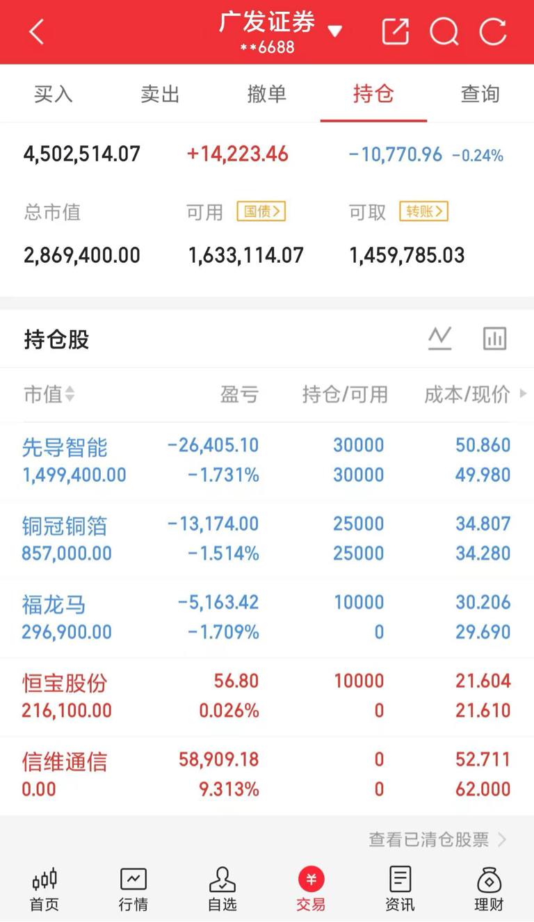 静姐目前持仓!今天尾盘进了恒宝股份与福龙马,福龙马今天跌的比较狠但是没触碰到阴线