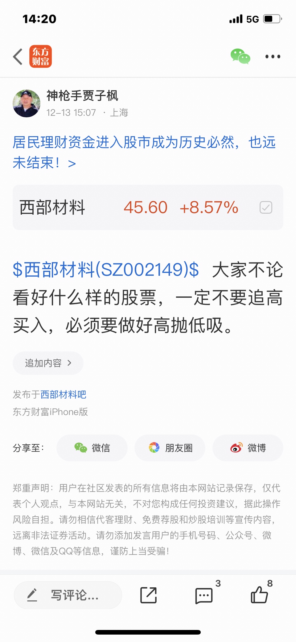 温馨提示: 1.根据《证券法》规定,禁止编造、传播虚假信息或者误导性信息,扰乱证券市场;2.用户在本社区发表的所有资料、言论等仅代表个人观点,与本网站立场无关,不对您构成任何投资建议。用户应基于自己的独立判断,自行决定证券投资并承担相应风险。《东方财富社区管理规定》