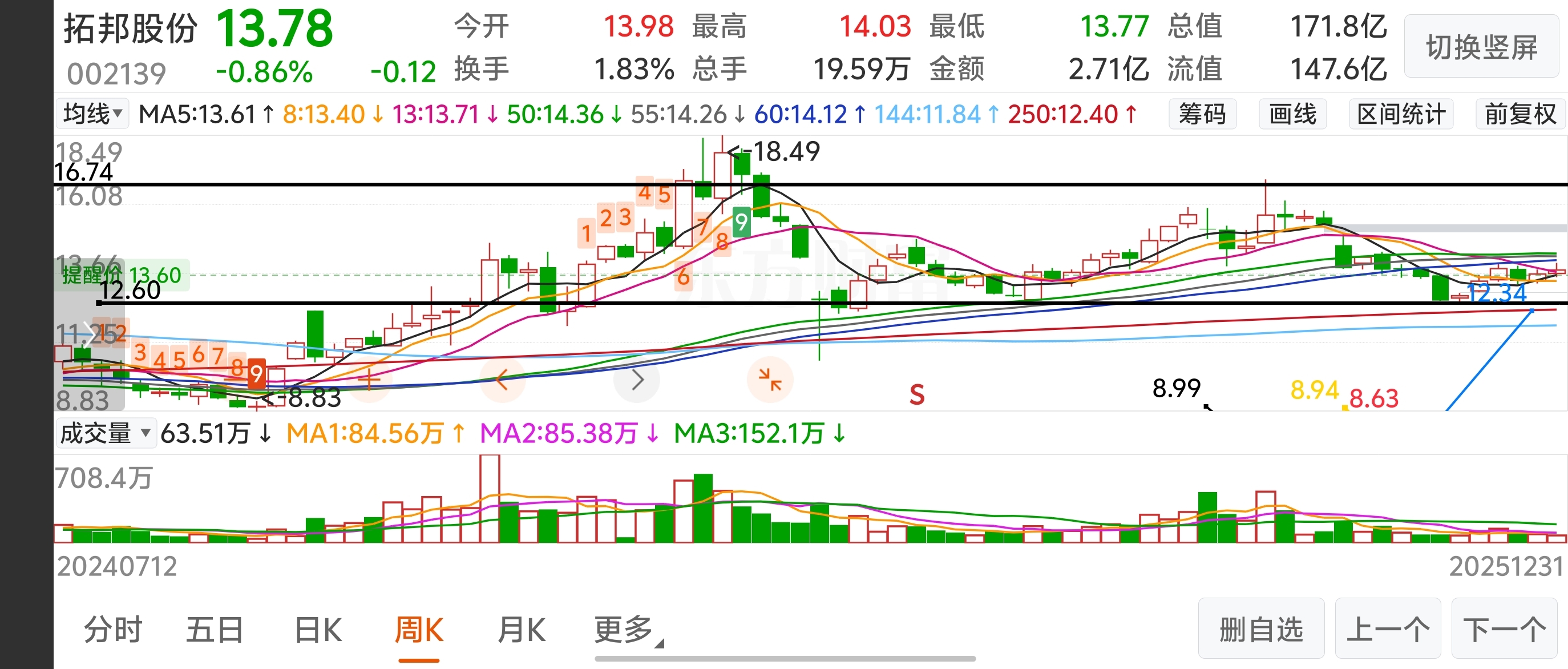 总结2025拓邦走势,结合基本面分析今年一季度为上涨周期,二季度为调整周期,下半年为上升周期。