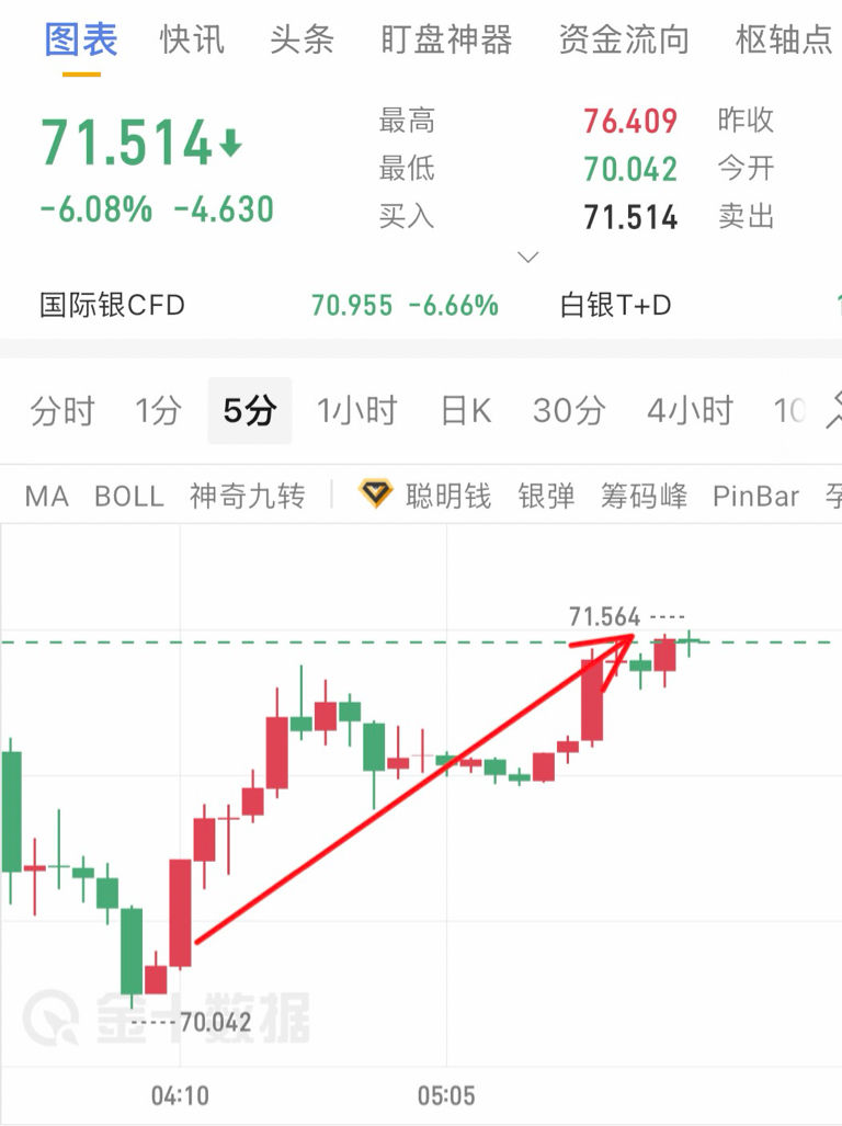 白银70.5下方的多单可继续持有,下跌空间有限、可继续上看75.6一线!