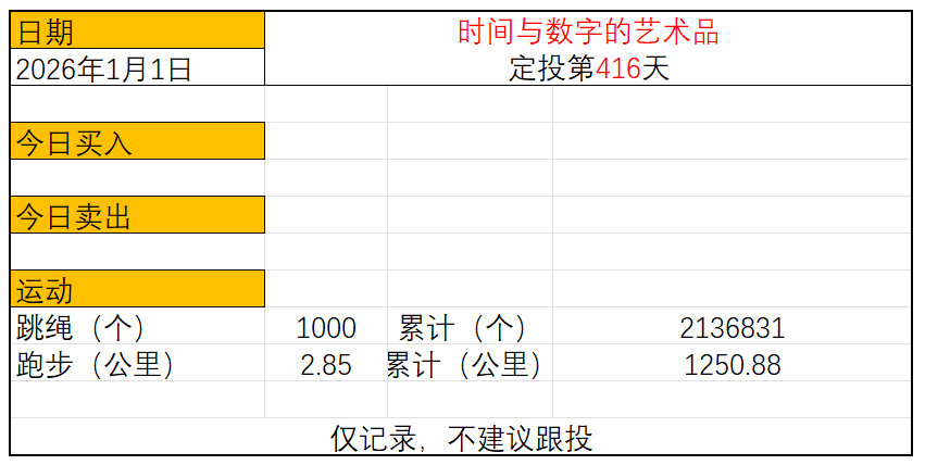 运动与投资第415天2026年1月1日今日定投:过节,没有定投跳绳:1000个,