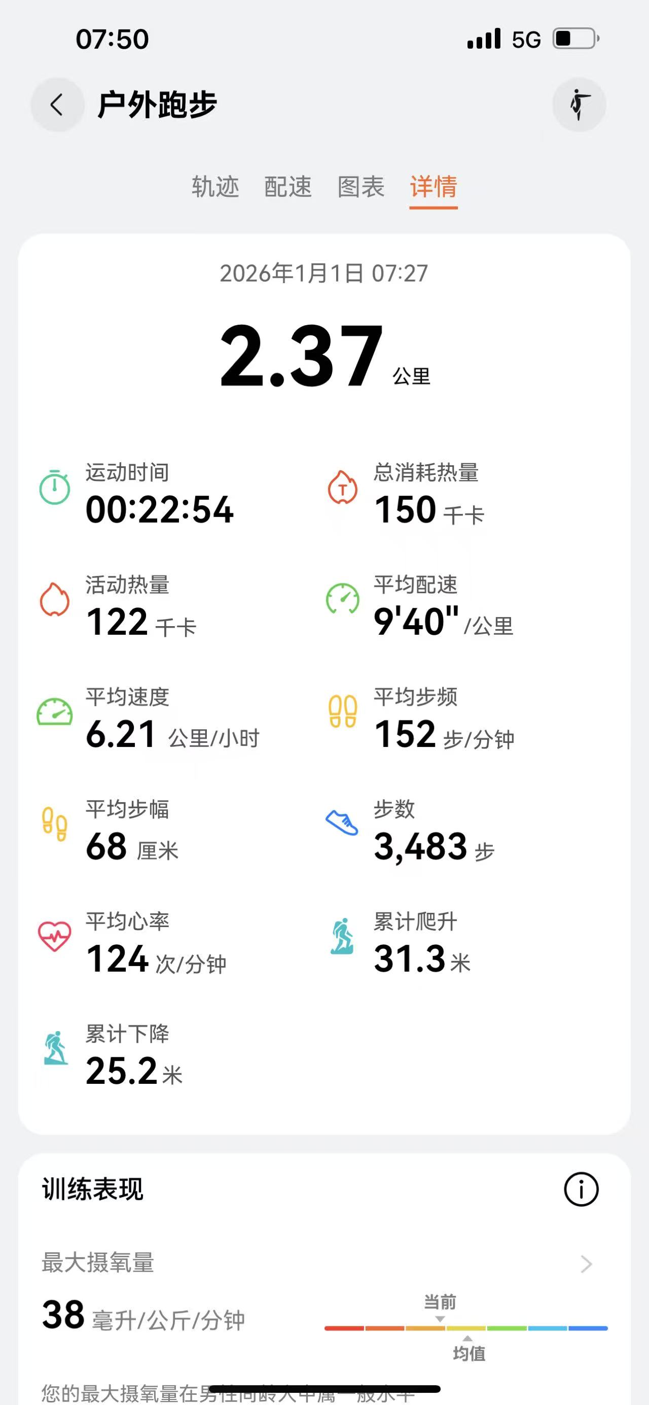 慢跑:2.37公里,累计慢跑:1253.25公里