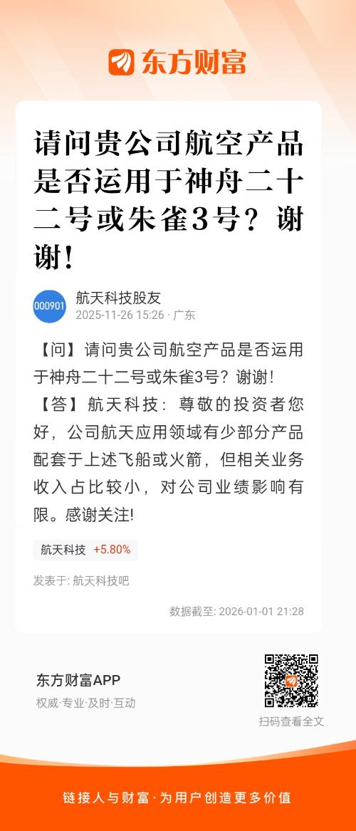 请问贵公司航空产品是否运用于神舟二十二号或朱雀3号?谢谢!