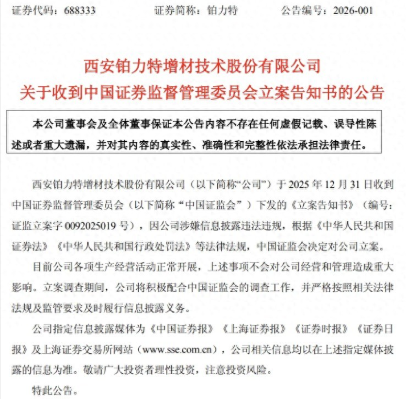商业航天刚疯涨就迎致命一击!突发利空砸来——热门牛股铂力特因涉嫌信息披露违法违规被证监会立案,更可怕的是,这已经不是板块第一只“出事”的股了!叠加总龙头尾盘诡异走势,散户必须立刻警惕:这波87%的疯涨行情,可能要彻底收尾了!