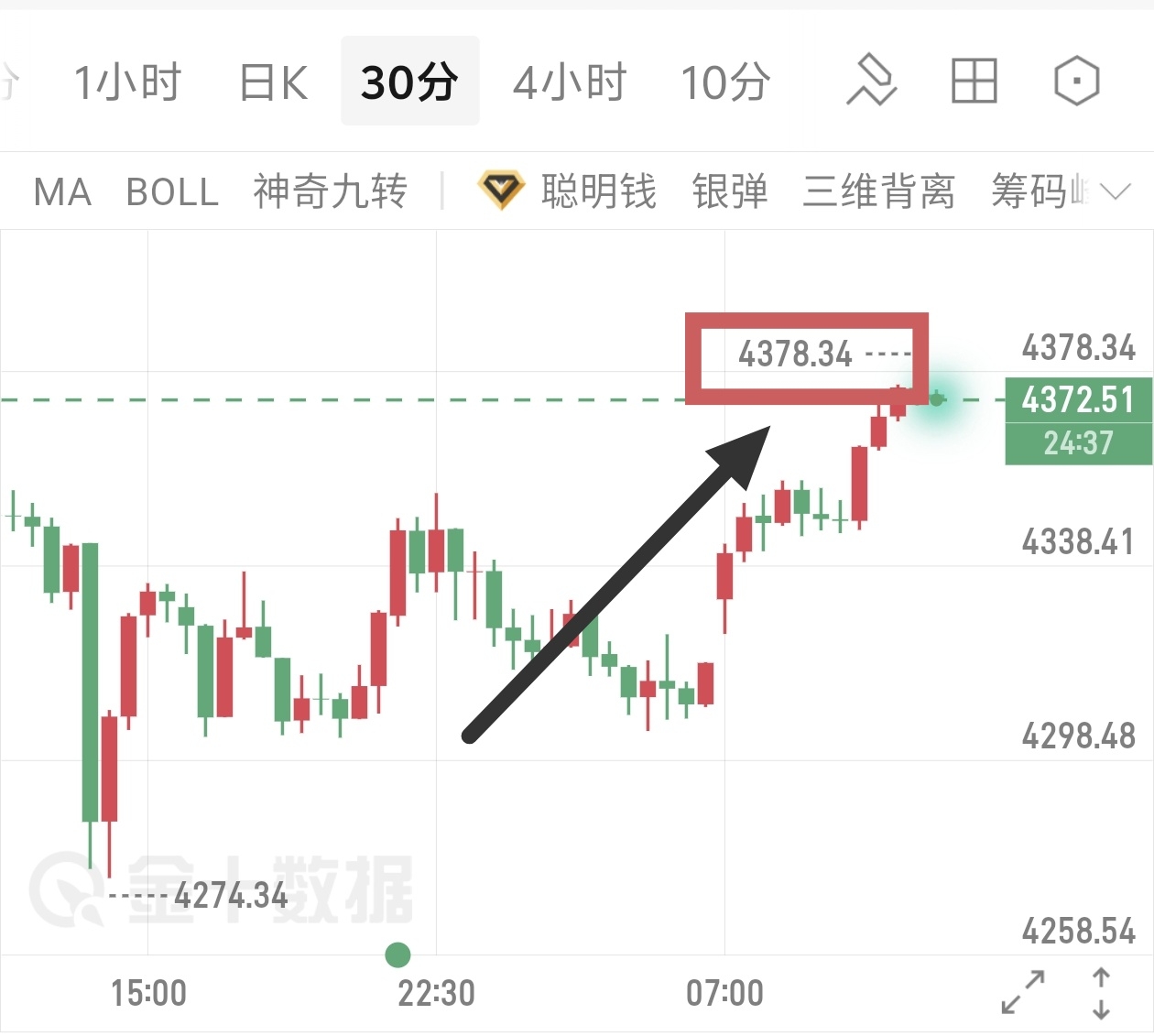 昨天给的黄金多单第一目标位4350-4380已到达,跟上的小伙伴评论区扣个1