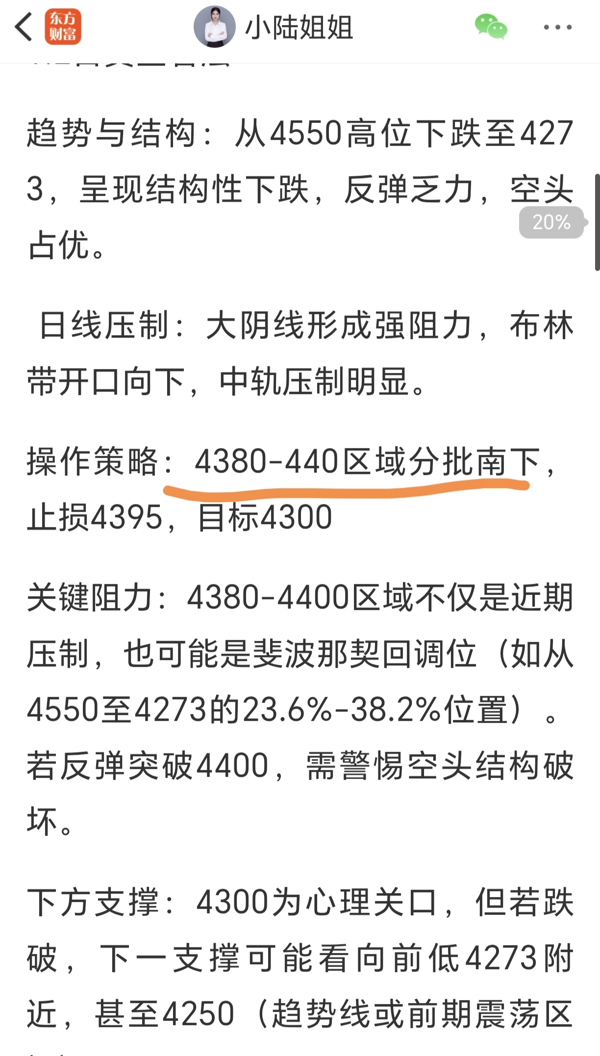 南下单子吃香啦,现在已经4319了,减仓收获留小尾巴继续博弈,目标4300,差不