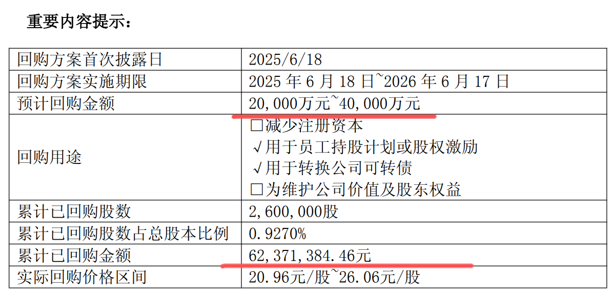这个公司发布回购公告,准备回购2亿到4亿元,现在已经累计回购了6237万元,接下来还要大幅回购。