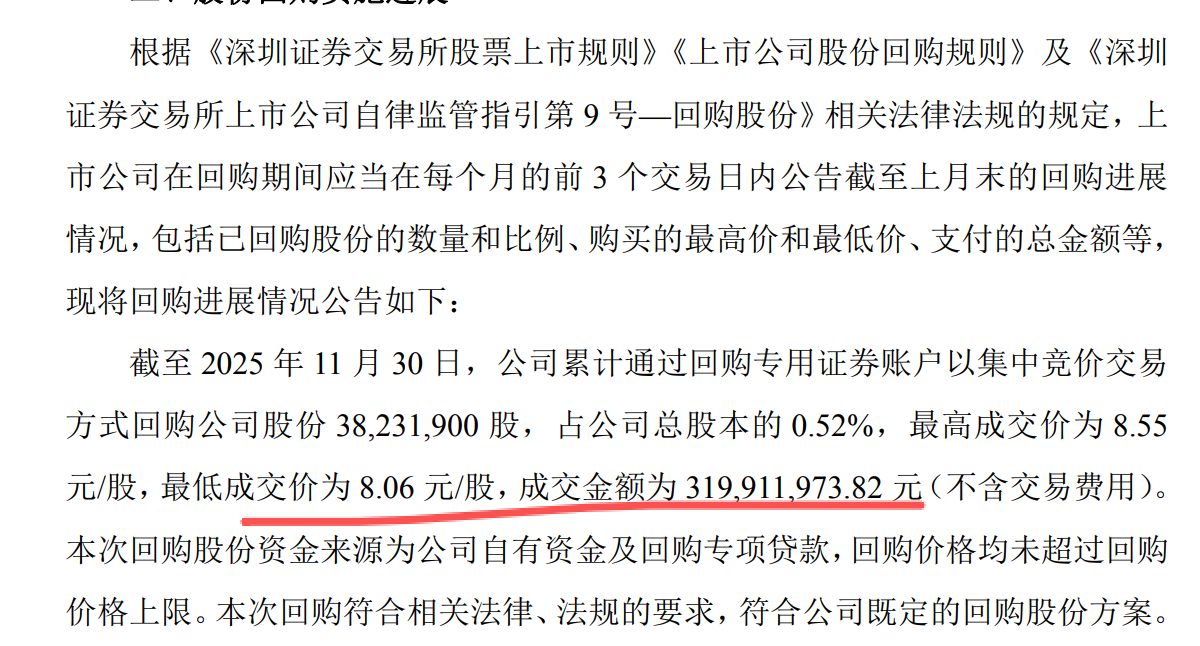 公司准备回购2亿到4亿元,现在已经回购了3.2亿元,回购的价格最低在8.55元。