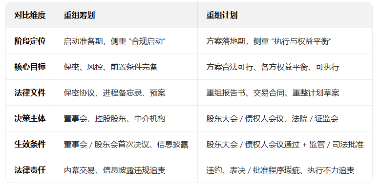 这里要强调一下,重组筹划与重组计划的法律要义。