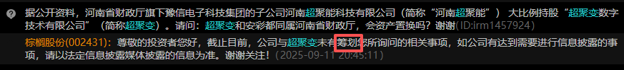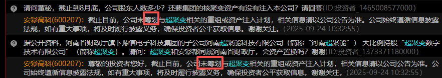同样是河南国资,我们对比看看其他上市公司对超聚变相关筹划的回复。