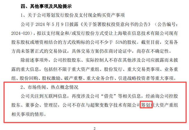那我们回过头来看看董秘自2024年以来的关于重组筹划正式公告表述。