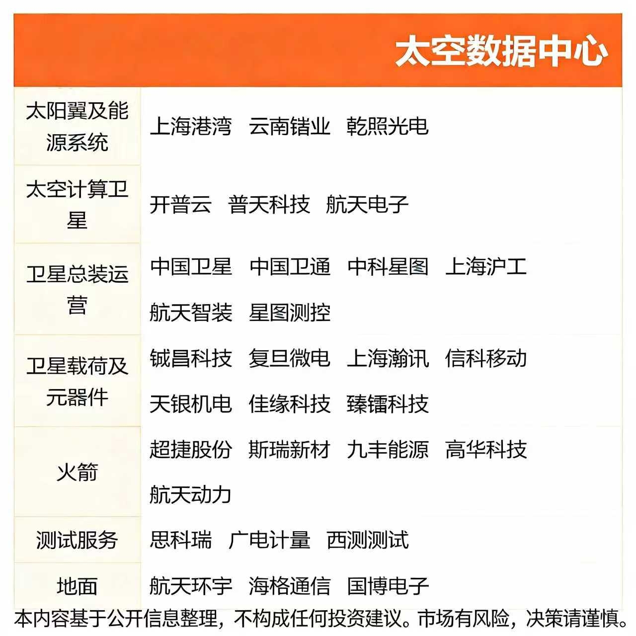 一图看清太空数据中心产业链再好的逻辑、预期,也需要择时、择股。本内容仅是基于行业