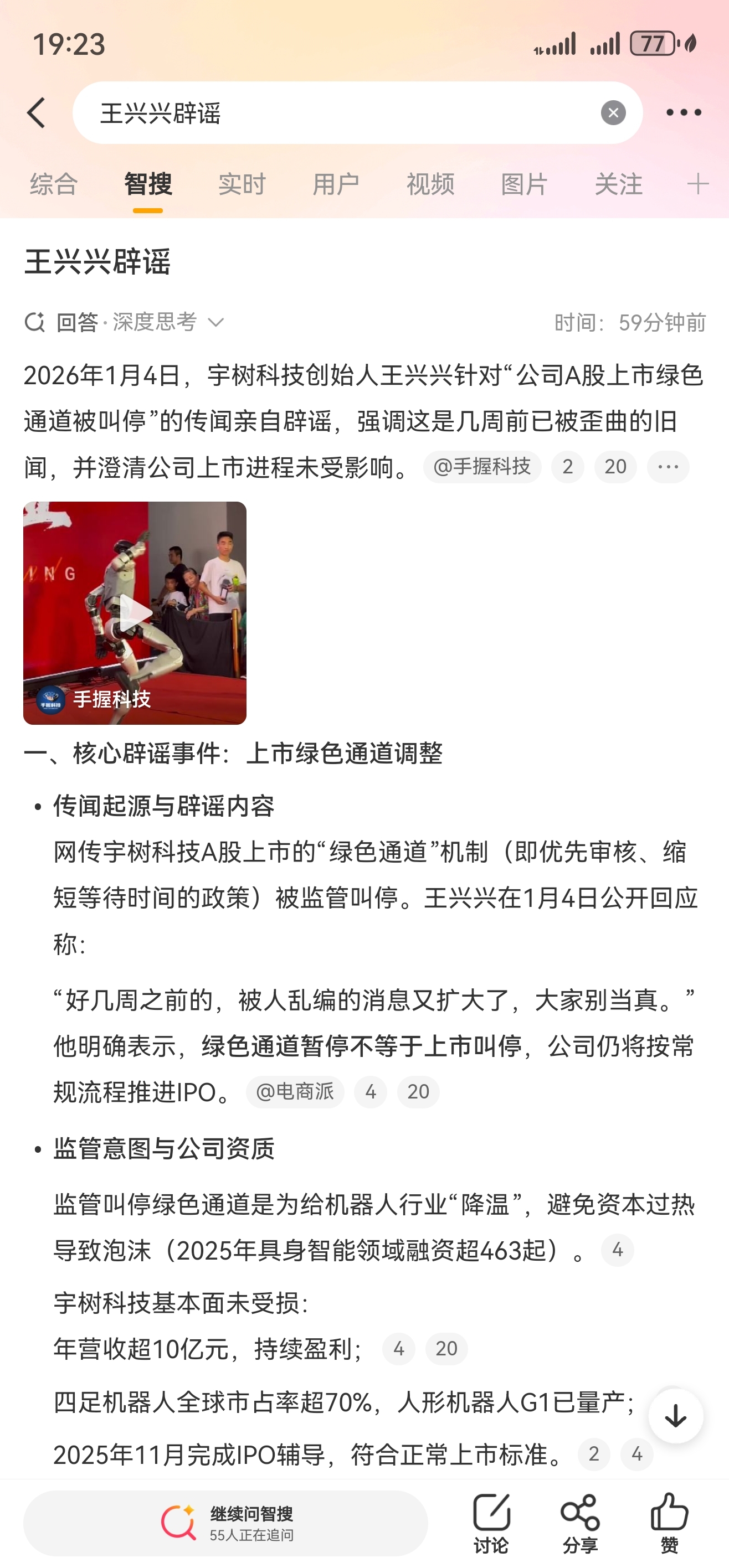#宇树科技 王兴兴辟谣