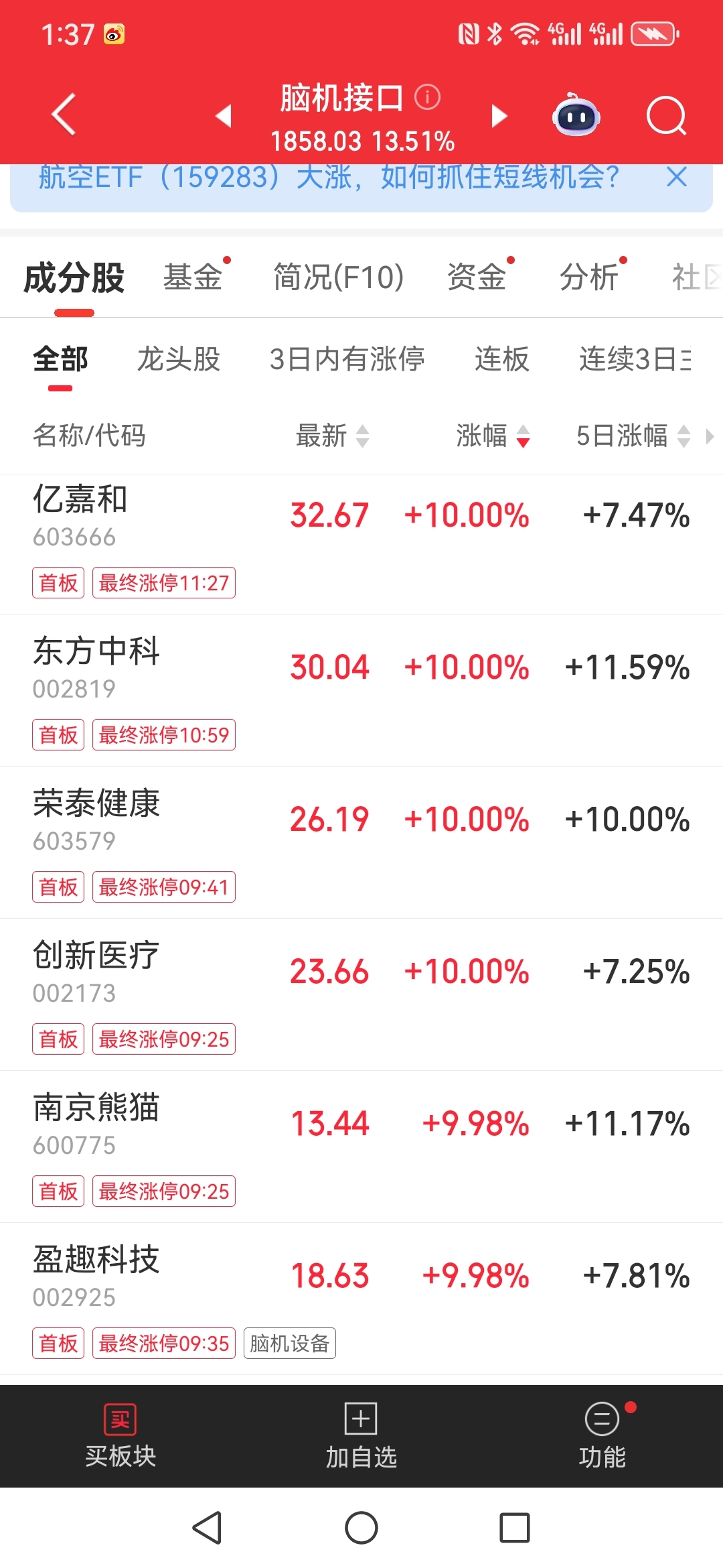 #炒股日记# #股市怎么看# #实盘记录# 人脑工程概念板块今日涨得不错,板块普涨,大部分股票涨停板或者涨幅超过10%,预计连贯性会有,明天值得期待。