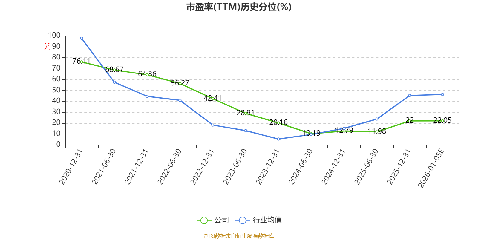 以本次披露业绩预告均值计算,公司近年市盈率(TTM)图如下所示: